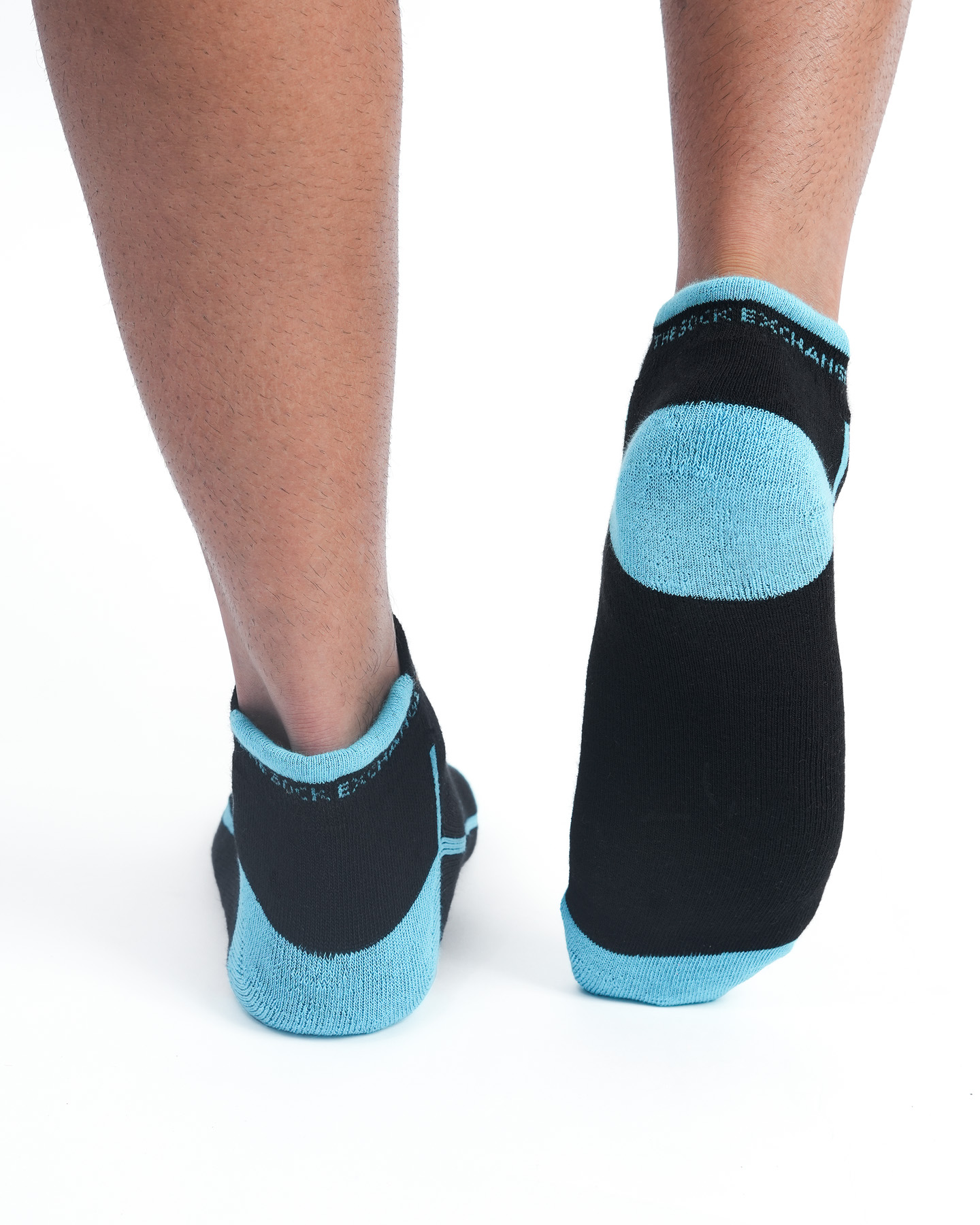 Step into effortless comfort with AirLift Comfort Socks — designed for style, support, and breathability. Crafted with mesh zones for ventilation, half-terry cushioning for shock absorption, and a secure ankle fit, these socks keep your feet cool, dry, and fatigue-free all day. The sleek black base with turquoise accents adds a bold, sporty edge — perfect for workouts, travel, or daily wear
