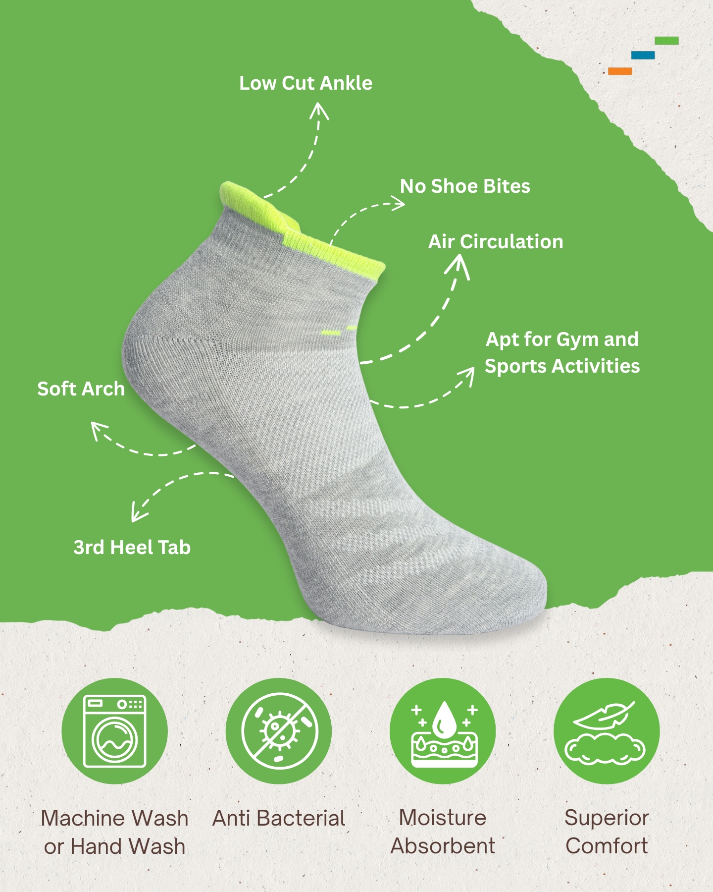 Unleash your potential with GripMax Performance Socks, engineered for athletes and active individuals who demand performance and comfort in every step. Featuring 3rd Heel Grip Technology for enhanced traction and stability, these unisex ankle-length socks ensure a secure fit during intense workouts or everyday wear. The half-terry cushioning offers superior shock absorption, while the breathable mesh panels keep your feet cool, sweat-free, and odour-resistant. Built for durability and flexibility, GripMax delivers all-day energy and precision—on the track, at the gym, or in daily life.