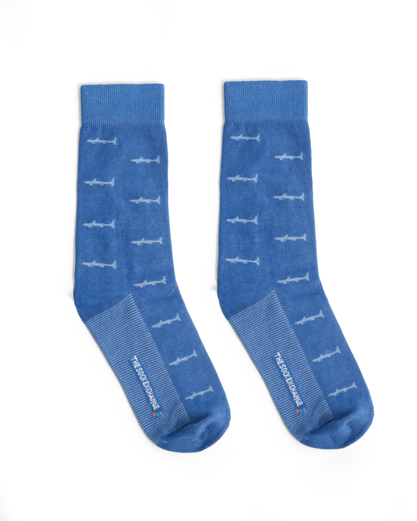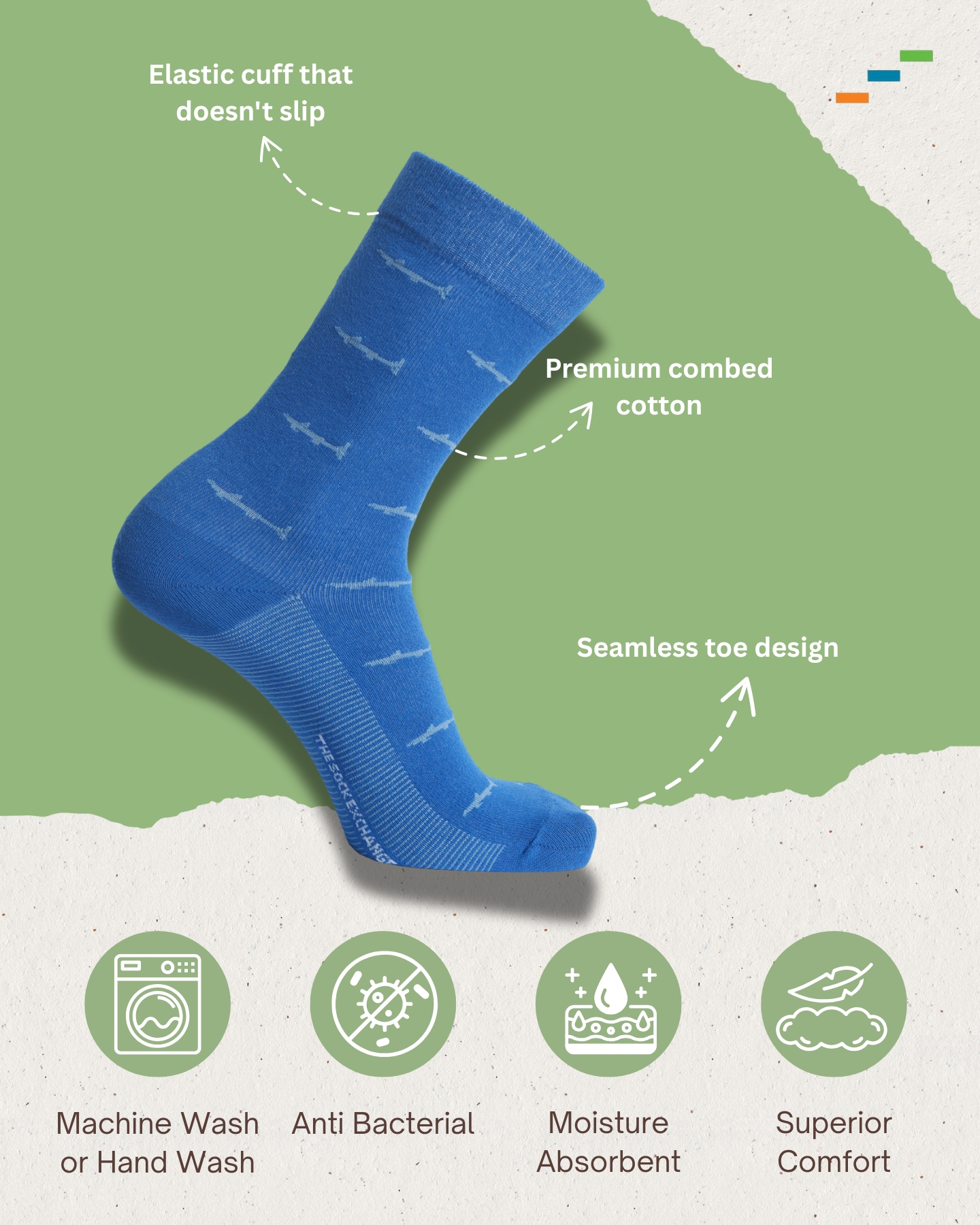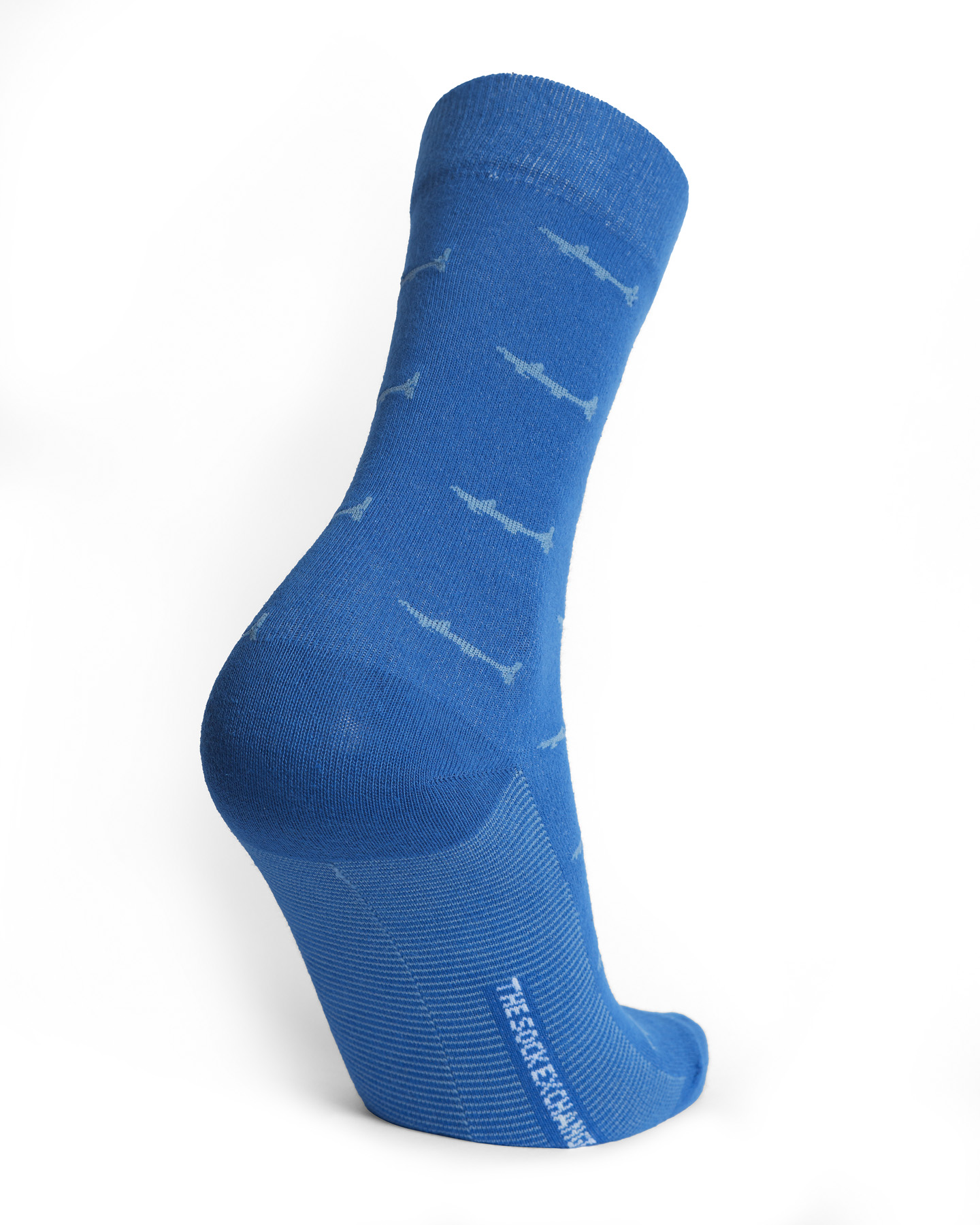 Sail into sophistication with Mariner’s Crest, a perfect blend of classic formality and modern character. Crafted in rich navy with subtle light-blue hammerhead motifs, these full-crew socks bring understated elegance to your formal wardrobe. Designed with a reinforced heel and toe, snug cuff for non-slip comfort, and breathable fine-gauge weave, they promise durability and all-day ease. The discreet “THE SOCK EXCHANGE” embroidery reflects refined craftsmanship and confidence.