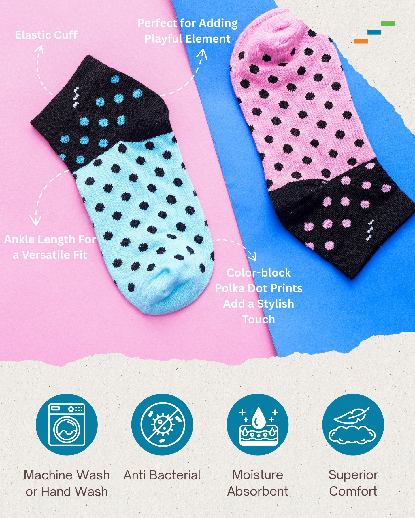 Buy women’s polka dot ankle socks online in India — breathable, stylish & season-friendly.