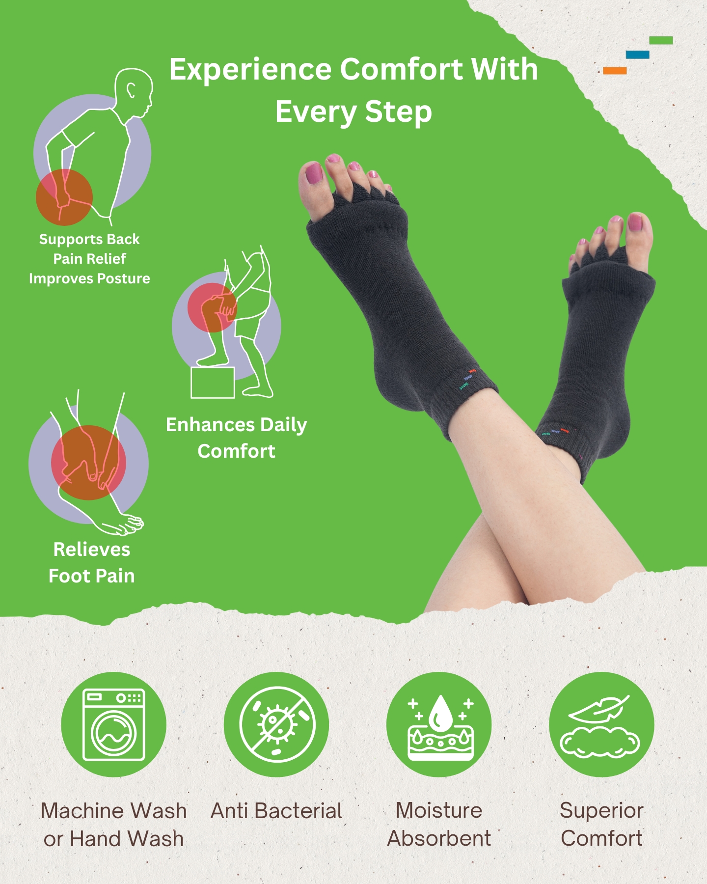 Buy toe alignment socks online in India — cushioned, orthopedic & posture-correcting.
